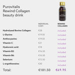 Purovitalis Rewind Collagen uses hydrolyzed peptides and is 30x more absorbable than regular collagen 75% more skin hydratation for a smoother, fuller, and glowing skin Clinically proven to support stronger bones...